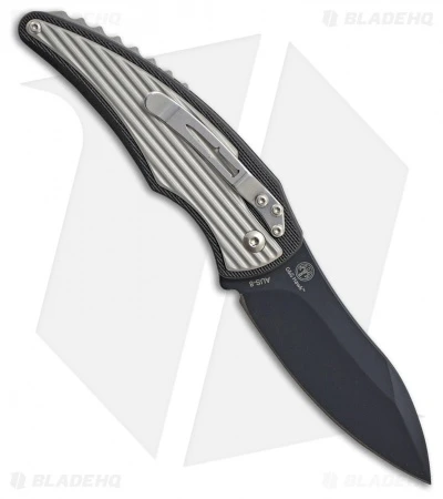- AUS-8 stainless steel, drop point blade has a black finish and flipper opener.