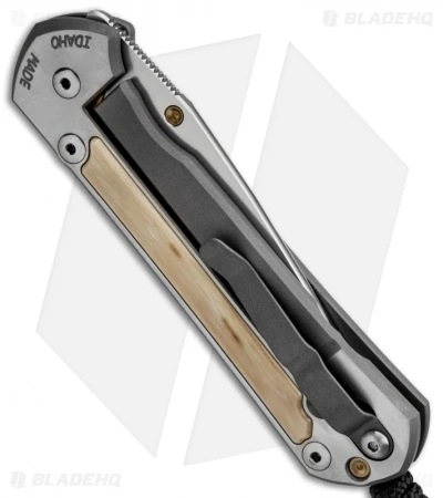 This Large Sebenza 21 model features a satin finished titanium handle with Mammoth Bark inlays. The frame lock and pocket clip are bead blast finished titanium. S35VN stainless steel blade with polished gold thumb lug.