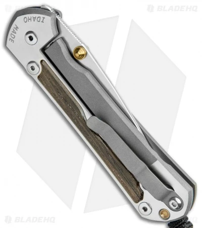 - Milled titanium handle scales with bog oak inlays.
