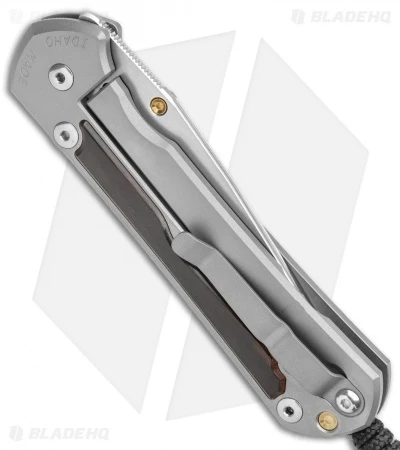 - Milled titanium handle scales with Macassar Ebony inlays.