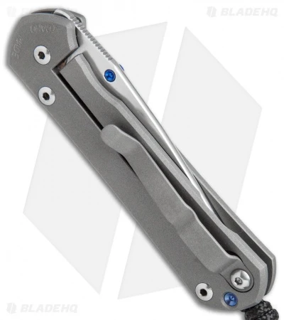 This Small Sebenza 21 features a satin finished titanium handle face with a Unique Graphic and an Amethyst Cabochon. The frame lock and pocket clip are bead blast finished with a blue anodized finished thumb lug and spacer. This Sebenza has a satin finished S35VN stainless steel blade. Includes lanyard and leather pouch.