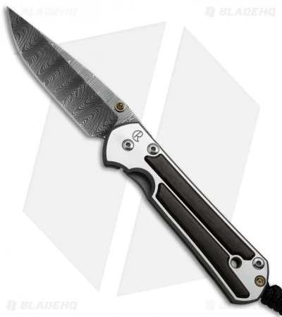 This Small Sebenza 21 features a ladder Damascus blade and gabon ebony wood inlays. Actual Damascus blade may differ slightly from the one pictured.
