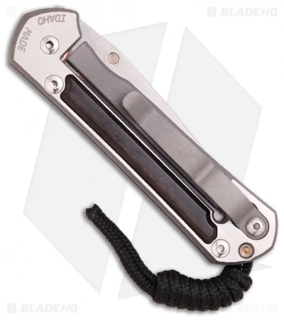 Chris Reeve Knives present the Small Sebenza with Gabon Ebony wood inlays. This Sebenza 21 fills the gap between hi-tech titanium and the organic feel of natural material. The wood inlays each fit exactly into one of three pockets machined into the handle, with two on the front and one on the back. The fit is made to extremely tight tolerances and the sections are retained with VHB™ (very high bonding) double sided tape. The inlays give a contoured feel to the handle and are as attractive as they are functional.