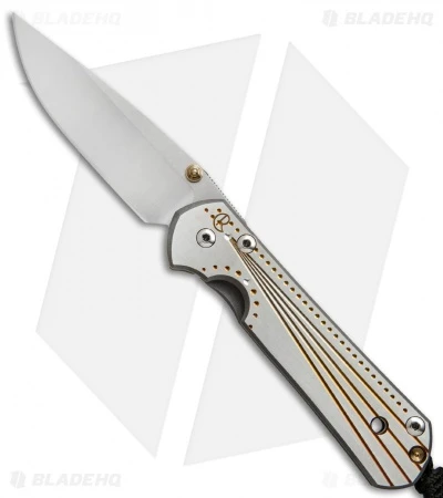 This Small Sebenza 21 features a satin finished titanium handle face with a Unique Graphic. The framelock and pocket clip are bead blast finished with a gold thumb lug and spacer. This Sebenza has a polished S35VN stainless steel blade. Includes lanyard and leather pouch.