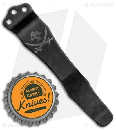 This Emerson replacement pocket clip features a “Pirate” graphic and a black finish. Each clip is made from stainless steel and designed to fit any Emerson folding knife. Like Emerson knives they are made in the U.S.A. Add a custom touch to your favorite Emerson knife with the “Pirate” pocket clip.