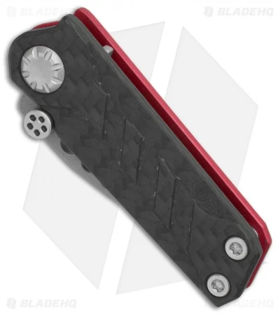 This EOS Prawn friction folder has a carbon fiber front and red anodized aluminum back handle. It sports a tanto blade made from durable D2 tool steel in a stonewashed finish. While the knife doesn’t lock, the blade can be held open or closed by adjusting tension on the thrust washers. The Prawn’s compact build allows easy carry in a backpack, gear bag, or pocket.