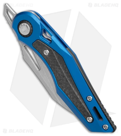 - Blue titanium handle with carbon fiber inlays.