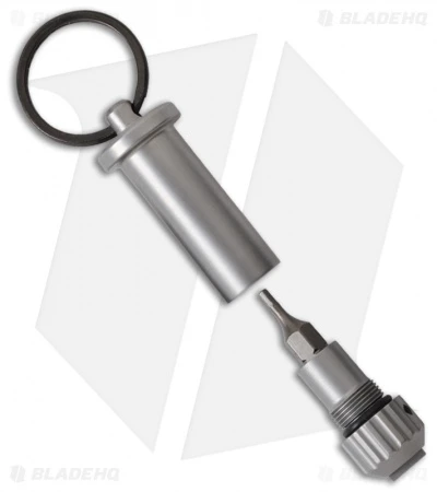 The Hinderer Armorer’s Tool is a pocket sized tool kit for the XM folding knives. It includes a built in spanner wrench, which makes it very easy to hold both the wrench and the knife at the same time for pivot adjustments. The head unscrews from the main body, it contains a precisely machined screw driver blade that matches the slot on the pivot screw of the XM-18. The head will also hold any standard 1/4″ bit. Includes a 5/64″ hex that works on the XM-18 3.5″ & XM-24 handle screws. The crossed drilled hole in the male end is there so you can use it as a “T” handle for extra torque. These are made from 17-4 PH hardened stainless steel, with a bead blast finish.