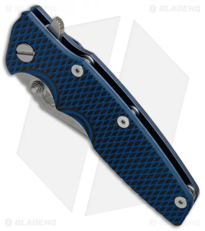 - Textured black/blue G-10 front handle scale with blue titanium frame.