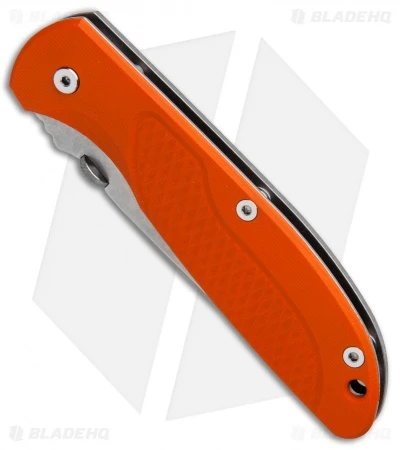 The Hinderer Firetac is a high performance production knife based on the classic Rick Hinderer custom. This model sports an orange G-10 handle and a stonewashed spanto blade. The G-10 has a machine textured belly and index contouring for a superior grip. A tumbled titanium frame lock provides necessary stability with a stainless steel insert for secure blade lock up. A reversible tip-up or tip-down pocket clip finishes off this solid Hinderer design.