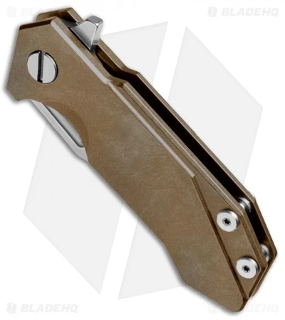 The Half Track may be modest in size, but its modesty ends there. This overbuilt frame lock folder is armed with a durable CPM-S35VN blade and aggressive no-slip jimping. Its slightly contoured handle offers a full grip and ensures the knife stays firmly in hand during use. This model has a smooth, bronze anodized titanium handle and a satin finished blade.