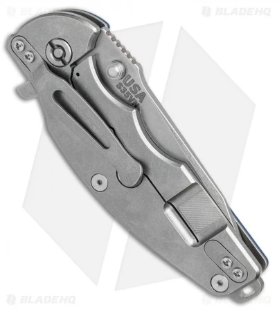 - Titanium frame lock bar with reinforced stabilizer offers rock solid blade lock up.