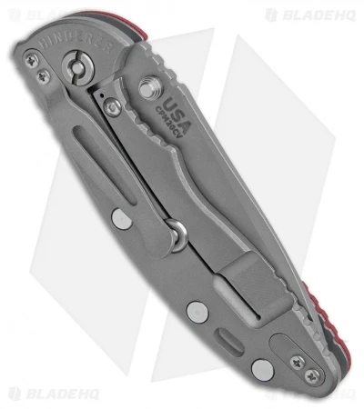 This XM-18 non-flipper model sports a 3.5″ Working Finish spear point blade and a red G-10 handle with a stonewashed titanium frame.