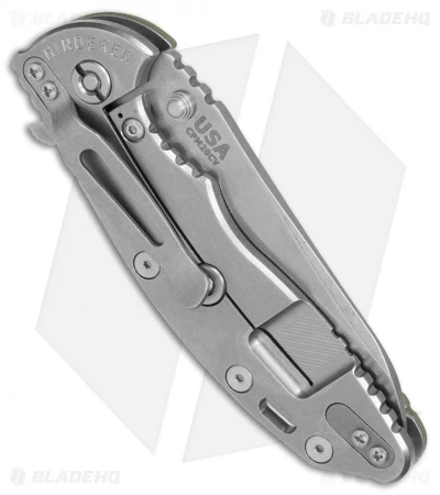 The Hinderer XM folder is a spectacular knife that deserves the attention and praise it’s received over the years. This XM-18 sports a 3.5″ sheepsfoot blade made from CPM-20CV steel with a stonewashed finish. The handle has an OD green G-10 scale and a tumbled titanium frame lock with a stainless steel lockbar insert, Hinderer lockbar stabilizer, and a reversible right-hand carry pocket clip.