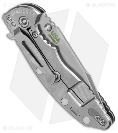 The Hinderer XM folder is a spectacular knife that deserves the attention and praise it’s received over the years. This XM-18 features a Harpoon Spanto blade made from CPM-20CV steel with a stonewashed finish. The handle has a grippy G-10 scale and a tumbled titanium frame lock with the Hinderer lockbar stabilizer and a reversible right-hand carry pocket clip.