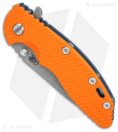 - Orange G-10 scale with a battle blue titanium frame.