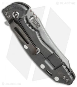 This XM-18 non-flipper model sports a 3″ stonewashed, spear point blade and a blue G-10 handle with a stonewashed titanium frame.