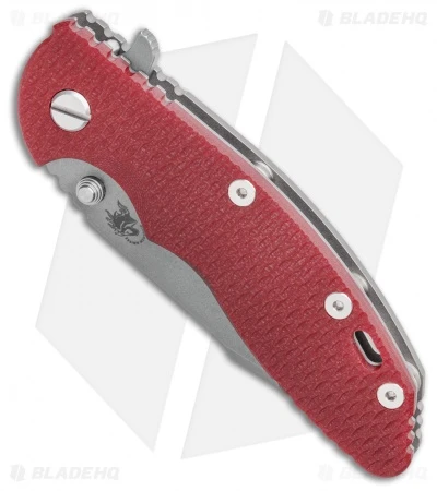 This XM-18 model sports a red G-10 handle and a 3.5″ Harpoon Spanto blade with a working finish.