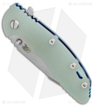 The Hinderer XM folder is a spectacular knife that deserves the attention and praise it’s received over the years. This XM-18 has a 3.5″ harpoon tanto blade with a working finish. The handle has a translucent green colored G-10 scale and a titanium framelock with the Hinderer lockbar stabilizer and a tip-up carry clip.