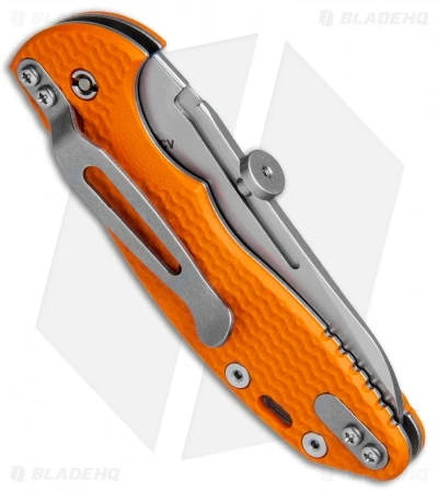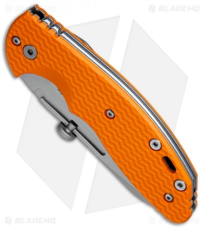 This XM Slippy model comes equipped with a stonewashed sheepsfoot blade and an orange G-10 slip joint handle. The Hinderer XM Slippy offers a pocket friendly slip joint design for all of your EDC needs. It sports a slimmed down G-10 handle with titanium liners and a stainless steel backspacer. The blade is made from CPM-20CV steel with a flat grind and a uniquely designed adjustable thumb disc opener. A reversible tip-up or tip-down titanium pocket clip finishes off the stellar EDC design.