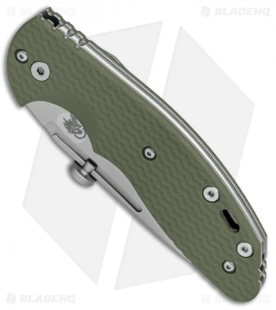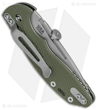 This XM Slippy model comes equipped with a stonewashed slicer blade and an OD green G-10 slip joint handle. The Hinderer XM Slippy offers a pocket friendly slip joint design for all of your EDC needs. It sports a slimmed down G-10 handle with titanium liners and a stainless steel backspacer. The blade is made from CPM-20CV steel with a flat grind and a uniquely designed adjustable thumb disc opener. A reversible tip-up or tip-down titanium pocket clip finishes off the stellar EDC design.