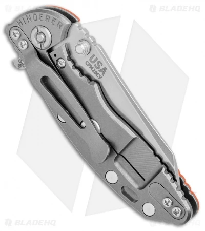 Hinderer’s XM-18 3″ Gen 6 enhances the standard formula with the addition of the Tri-Way Pivot System. The system allows the use of bearings, phosphor bronze washers, or teflon washers in the pivot depending on preference. This model comes equipped with a wharncliffe blade in a stonewash finish and sports an orange G-10 handle scale. The XM-18 Gen 6 is outfitted with a stainless steel lockbar insert, the Hinderer Lockbar Stabilizer, and a reversible pocket clip for right side carry.