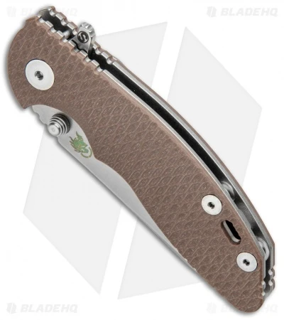 This XM-18 Skinny model offers a slimmer EDC build with brown G-10 scales on both sides of the handle and a stonewashed sheepsfoot blade.
