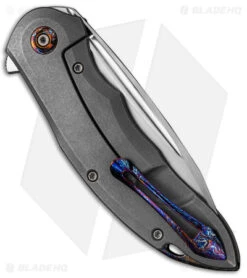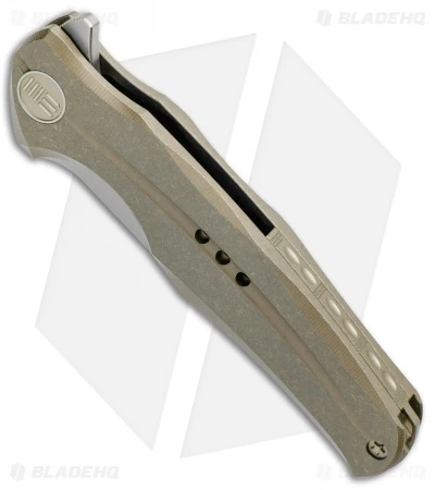 This 601L model comes with a bronze finished titanium handle and a bead blasted blade. WE Knife Co. has created a titanium folding knife that easily rivals the top U.S. brands. The 601 folder offers expertly contoured titanium handles and a uniquely ground CPM-S35VN steel blade. It has a modified drop point style with a tanto inspired blade point. The 601 is equipped with a blade flipper and ceramic ball bearings for unbelievably fast and smooth blade deployment. Includes a titanium pocket clip, backspacer, and adjustment tool.