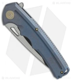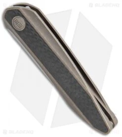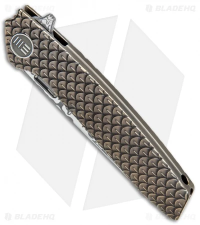 This limited 604DS model has a bronze titanium handle and a Vinland Damasteel drop point blade. The We Knife Co. 604D offers a long elegant design with a sleek blade and a scale textured titanium handle that provides a utilitarian grip as well as a collectible appearance. Dark bronze hardware adds a nice finishing touch to the design.
