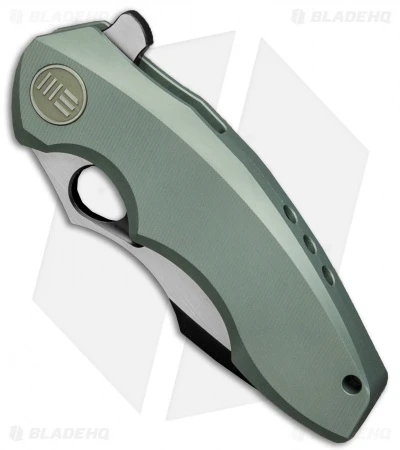 The 605D represents We Knife Co’s most compact EDC flipper to date. With a 3″ blade and a sturdy titanium handle, the 605 is built strong enough to handle any cutting chore, big or small. The frame lock handle features a reinforced lock bar and an ergonomically contoured grip. It has a modified drop point blade with a choil and thumb rest for choking up your grip for more leverage. A blade flipper and an ample thumb hole provide diverse deployment options. This 605D model has a green anodized handle with green hardware and a two-tone finished blade.