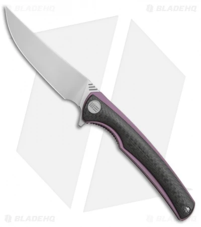 The 704CF-A folding knife from WE Knife Co. is equipped with carbon fiber scales over purple anodized titanium liners. Its lightweight handle is paired with a hand rubbed satin finished Bohler M390 blade with a slight upswept tip. The addition of a ball bearing pivot offers smooth flipping action for responsive and reliable one-handed blade deployment. This pocket-friendly design comes fitted with a purple anodized tip-up titanium pocket clip.