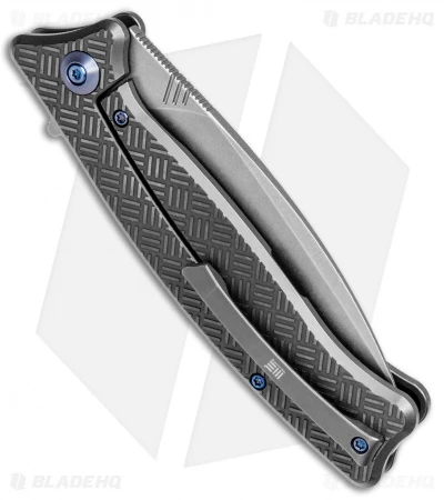 This Balaenoptera 712D model is outfitted with a gray titanium handle and a stonewashed blade with a plain edge.