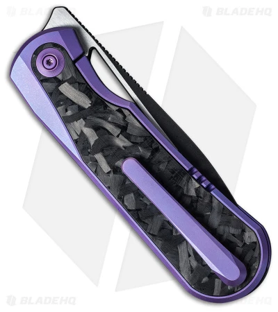 - Purple titanium handle with a shredded carbon fiber inlay.