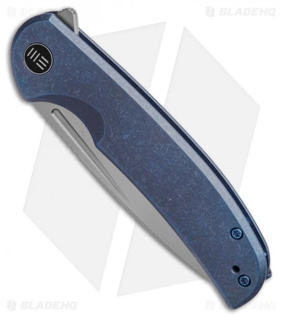 - Blue titanium handle scales.