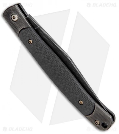The WE Gentry is a high-end traditional slip joint knife featuring premium materials and design. The blade is made from CPM-S35VN steel and sports a hand rubbed black finish. A carbon fiber inserts rests inside of the black titanium handle. A lanyard hole is provided for convenient, every day carry.