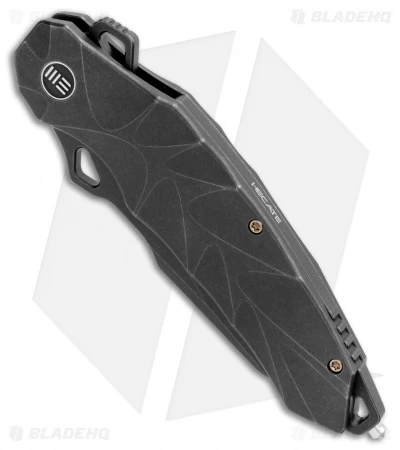 The WE Knife Co. Hecate is a frame lock knife with a contoured titanium handle and a CPM=20CV blade. Designed for tactical applications, this over-built knife has a dramatic Wharncliffe blade optimized for utility and combat. The handle has a hardened glass breaker tip and texturing for a secure grip, even with gloves.