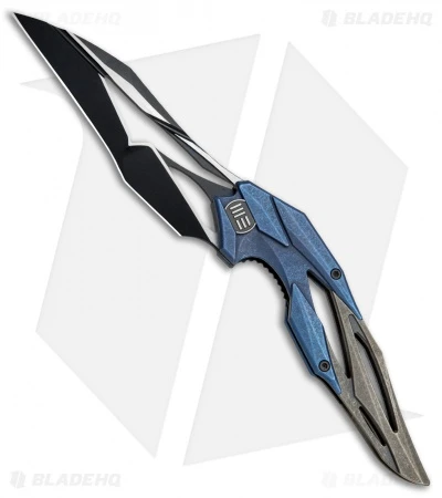 The WE Knife Co. Eschaton showcases Elijah Isham’s unique design aesthetic, and introduces what he calls a ‘sub-integral’ frame design. Its frame is made from a single piece of bronze anodized titanium, while the upper section of the handle is outfitted with blue anodized Ti scales. The futuristic wharncliffe blade is made from durable Bohler M390 stainless steel with a two-tone finish and distinctive thumb cutouts. Weighing in at only 3.9 ounces, the Eschaton is a convenient EDC folder that sets itself apart from the crowd.