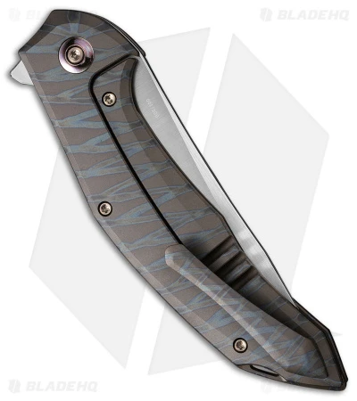 - Flamed titanium handle scales with a smooth texture.