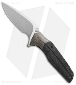 The 707D Nitida has a stonewashed blade and a bronzed titanium frame lock handle with a carbon fiber inlay.