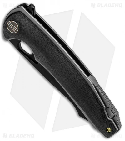 The Yucha from WE Knife Co. offers a sleek titanium build for stylish gentlemen’s carry. This Yucha model is outfitted with a black stonewashed harpoon style blade and a titanium frame with carbon fiber scales. The flipper blade glides open effortlessly on WE’s ceramic ball bearing pivot. Thumb rest jimping and an index choil provide a secure grip for any difficult cutting task. Class up your everyday carry rotation with the WE Knife Co. Yucha.